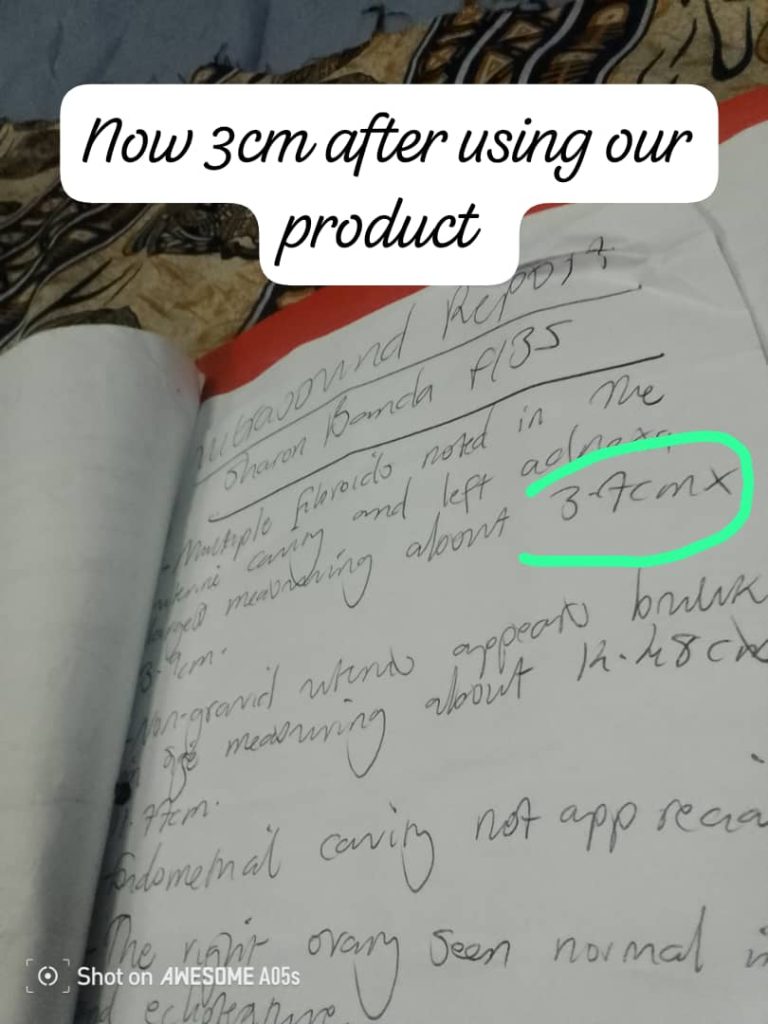 I had fibroid and ovarian cysts. Doctors said surgery, but I was scared. After using Fibroid Cyst Crusher, my scan showed the fibroid shrank and cysts disappeared. My cycle is now normal. I can go out without fear of heavy bleeding. I wish I found this product years ago.