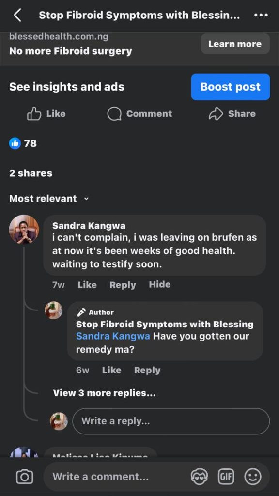 She tried different drugs and teas that promised to shrink fibroid. Nothing worked.